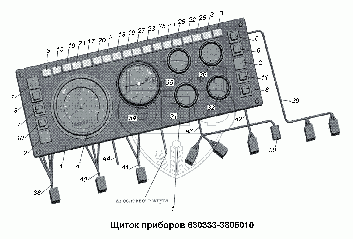 Каталог запасных частей к технике: МАЗ-533731. Щиток приборов 630333-3805010