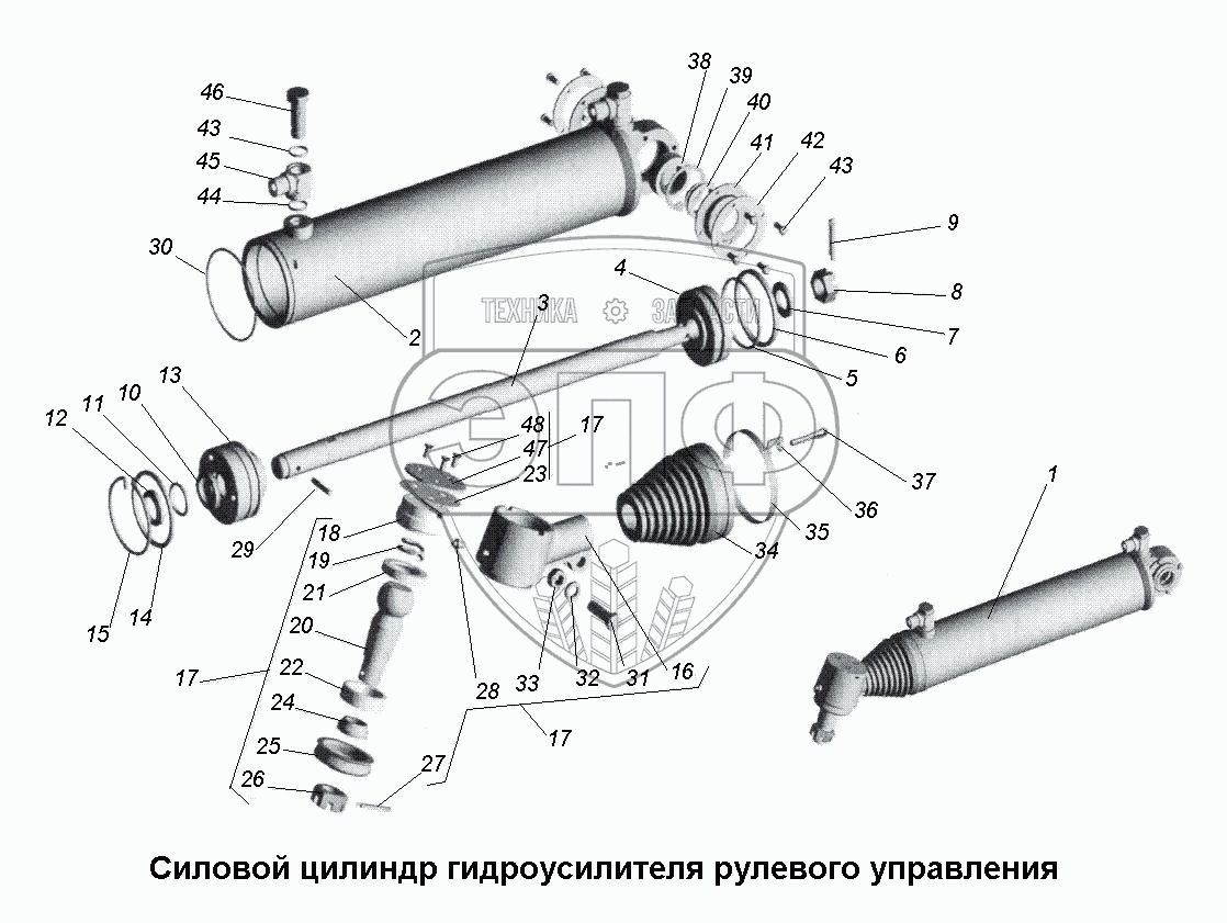 Каталог запасных частей к технике: МАЗ-533731. Силовой цилиндр гидроусилителя рулевого управления