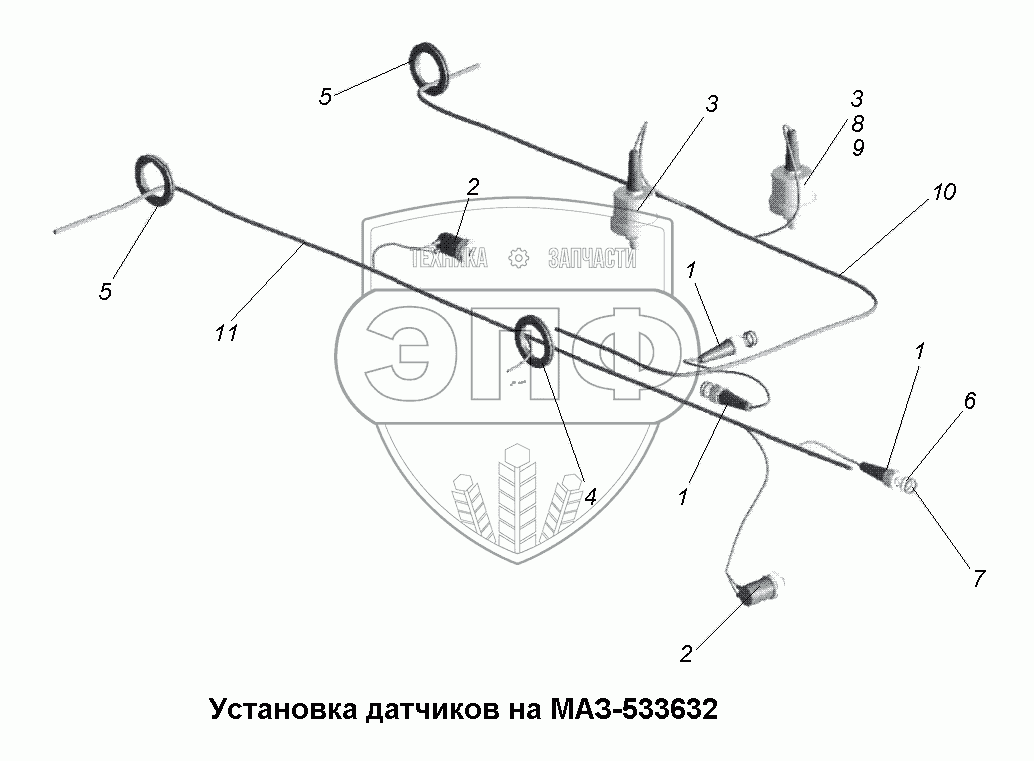 Каталог запасных частей к технике: МАЗ-533731. Установка датчиков на МАЗ-533632