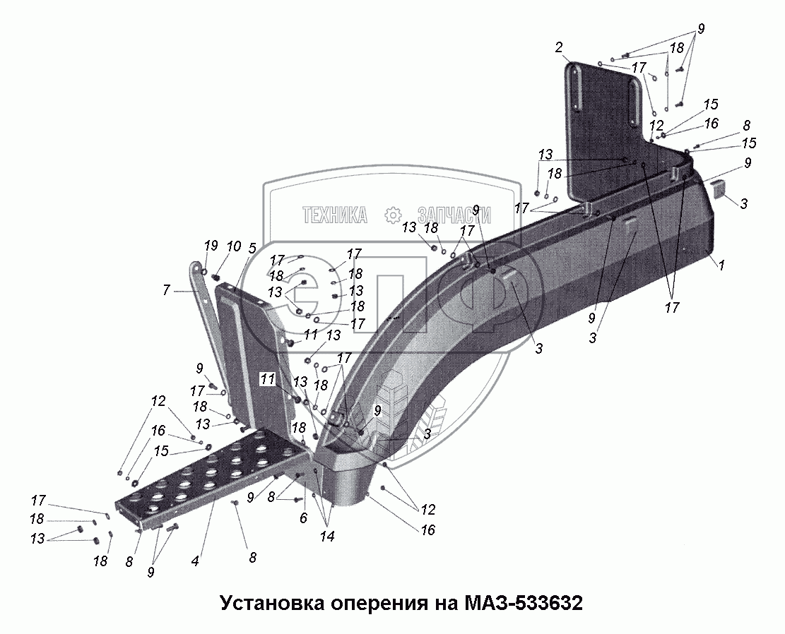 Каталог запасных частей к технике: МАЗ-533731. Установка оперения на МАЗ-533632