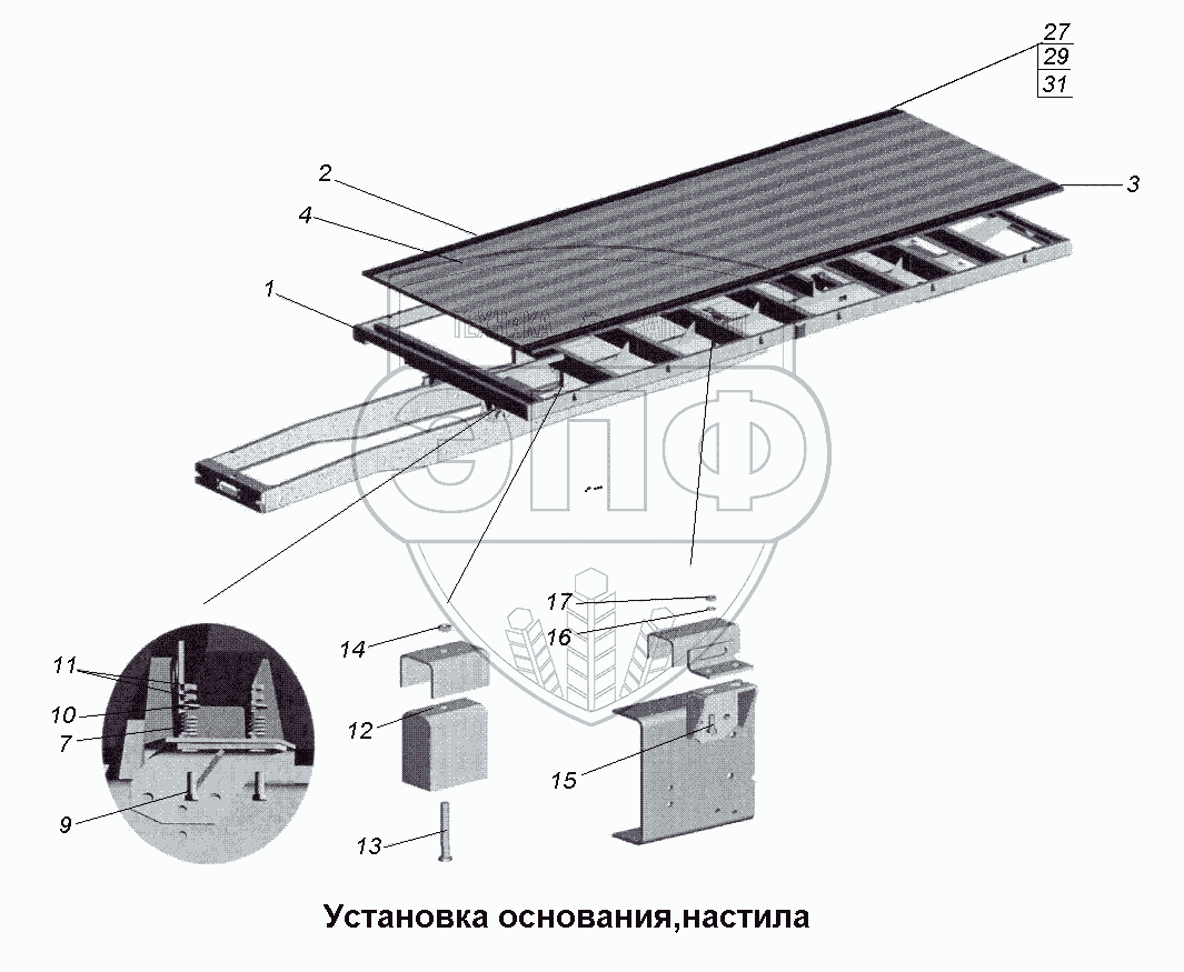 Каталог запасных частей к технике: МАЗ-533731. Установка основания, настила