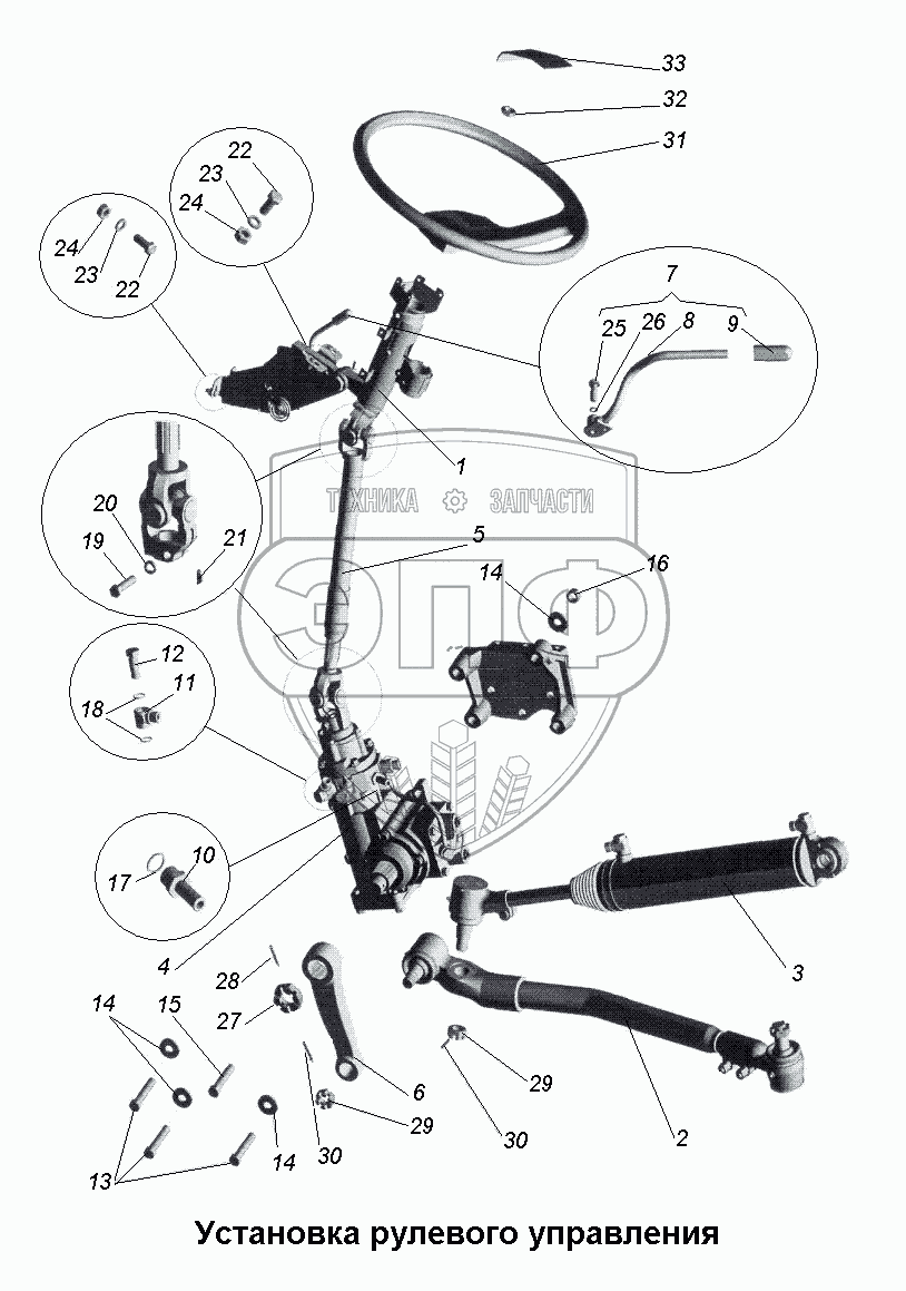 Каталог запасных частей к технике: МАЗ-533731. Установка рулевого управления