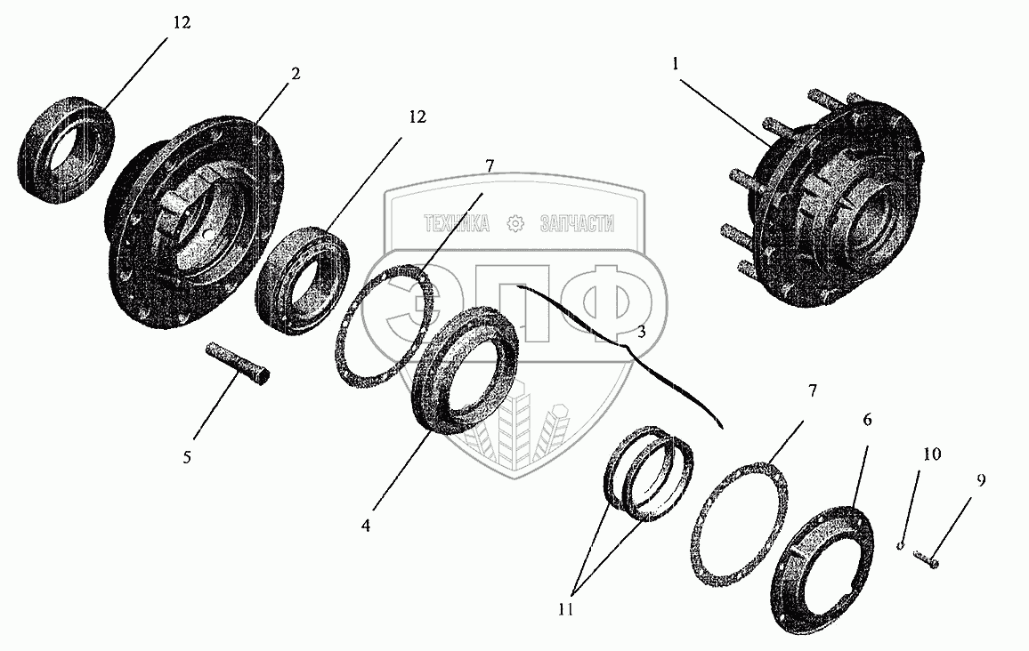 Каталог запасных частей к технике: МАЗ-5337 (2005). Ступица моста