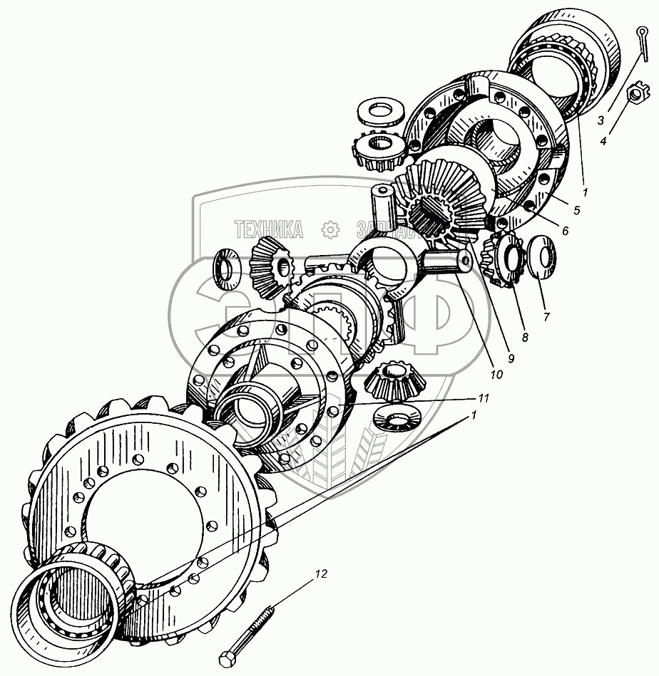 Каталог запасных частей к технике: МАЗ-5429. Дифференциал переднего моста МАЗ-509А