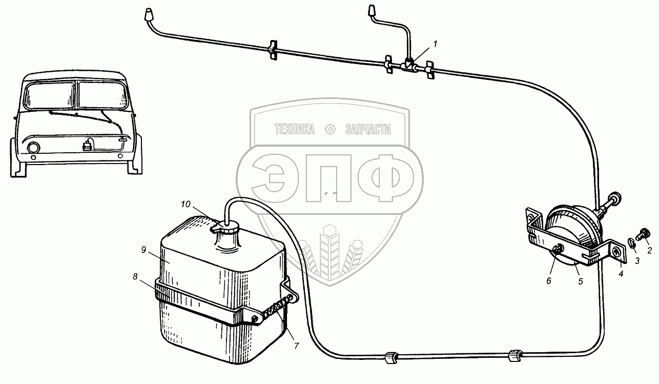 Каталог запасных частей к технике: МАЗ-5429. Омыватель ветровых стекол