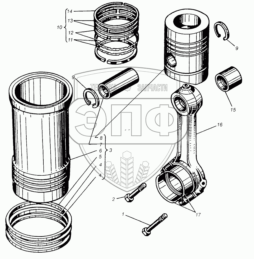 | 3 | 236-1004006 | Гильза, поршень, поршневой палец, кольца уплотнительные и антикавитационные | Нет на складе | |
