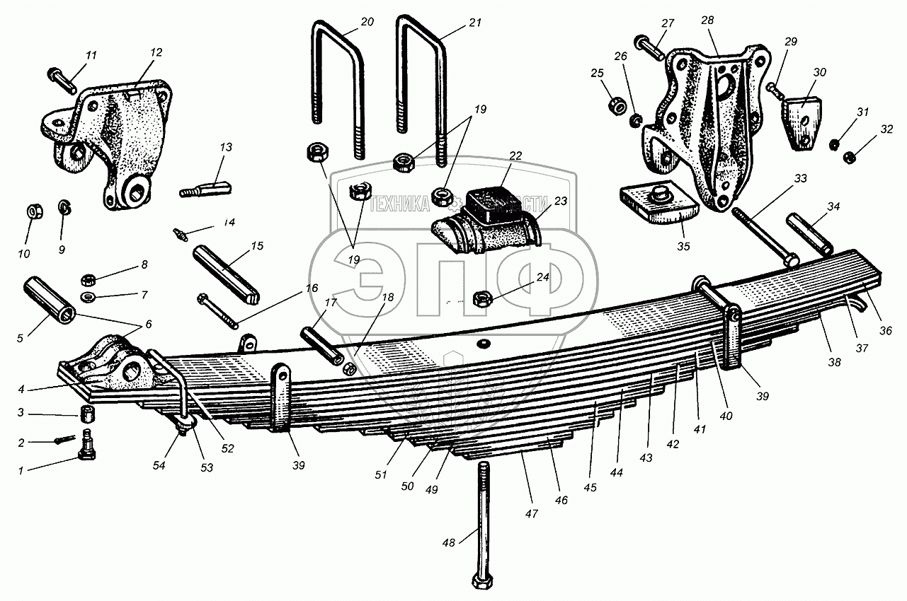 Каталог запасных частей к технике: МАЗ-5429. Рессора передняя