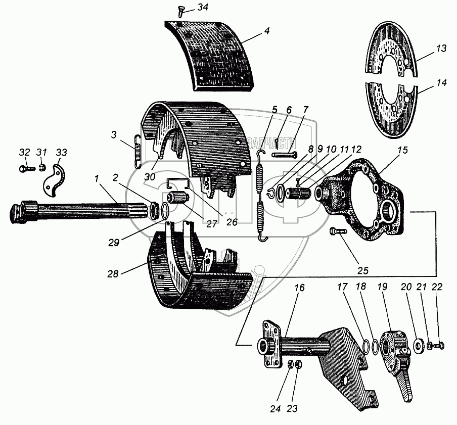 Каталог запасных частей к технике: МАЗ-5429. Тормоз рабочий задний
