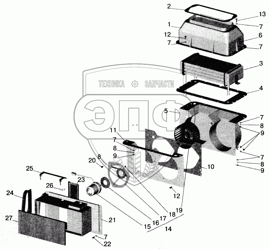 Каталог запасных частей к технике: МАЗ-543202. Отопитель