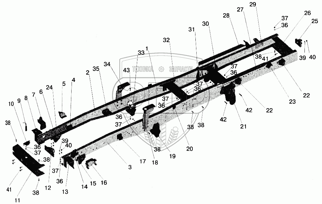 Каталог запасных частей к технике: МАЗ-543202. Рама 543205, 543208-пневмоподвеска