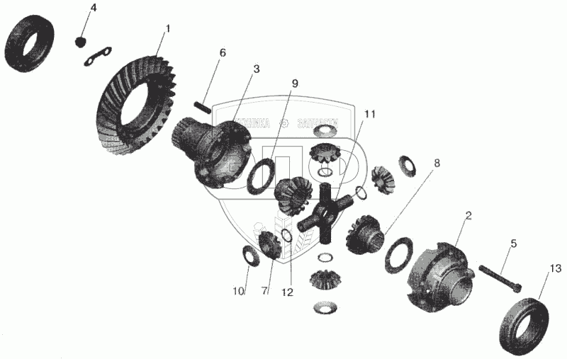 Каталог запасных частей к технике: МАЗ-543202. Редуктор среднего моста. Дифференциал