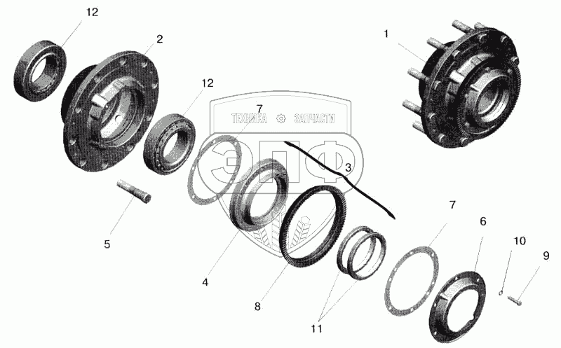 Каталог запасных частей к технике: МАЗ-543202. Ступица моста