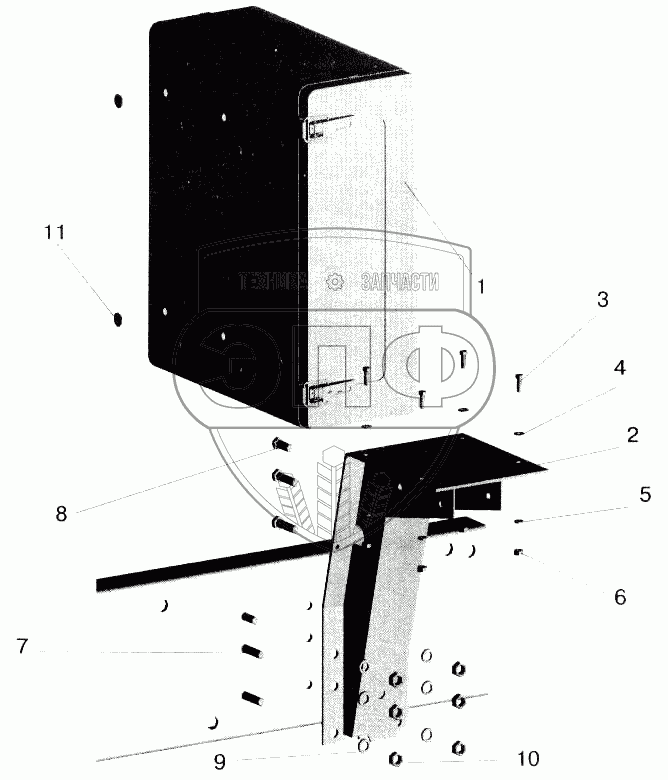 Каталог запасных частей к технике: МАЗ-543202. Установка инструментального ящика