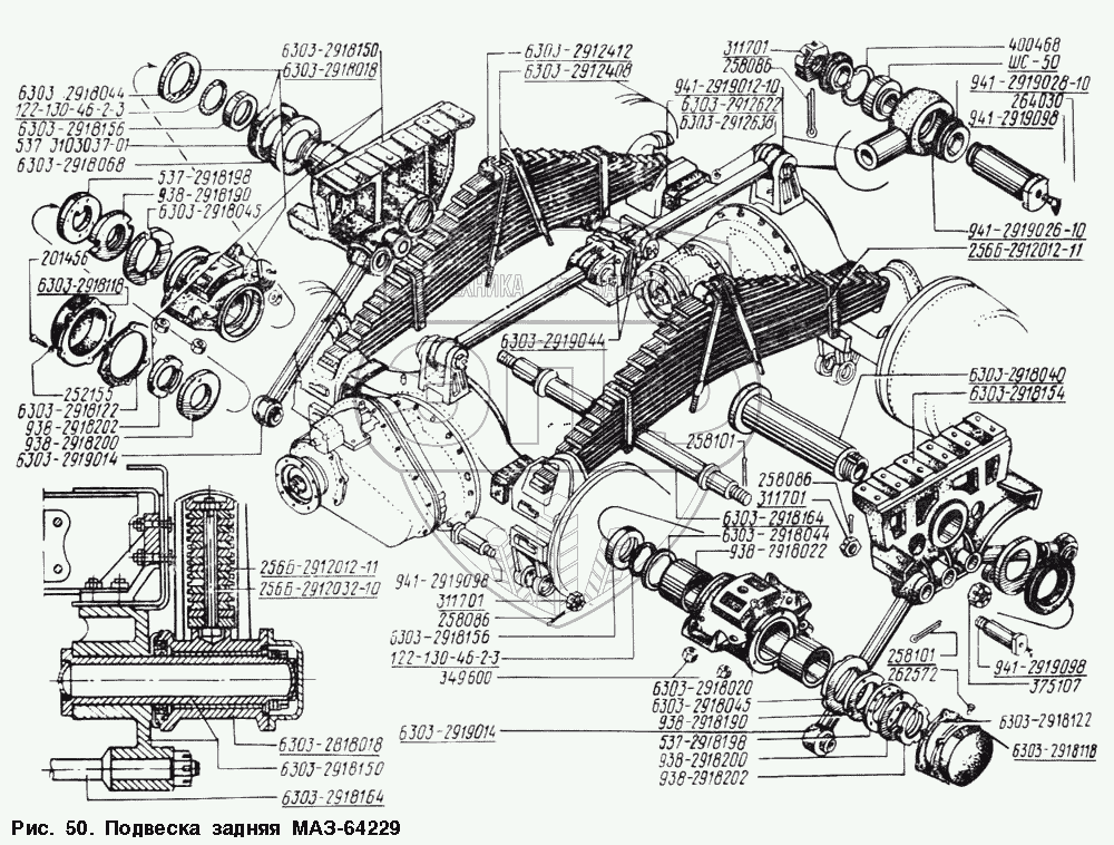 Каталог запасных частей к технике: МАЗ-54328. Подвеска задняя МАЗ-64229
