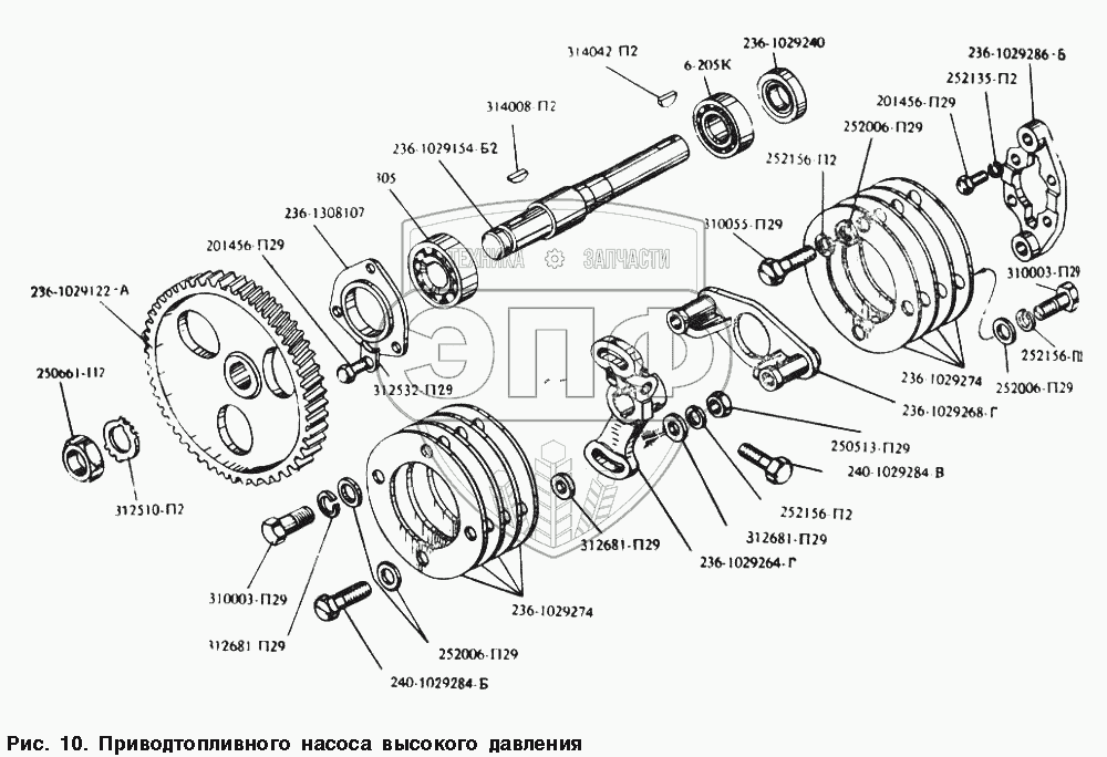 Каталог запасных частей к технике: МАЗ-54328. Привод топливного насоса высокого давления