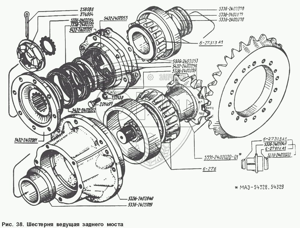 Каталог запасных частей к технике: МАЗ-54328. Шестерня ведущая заднего моста