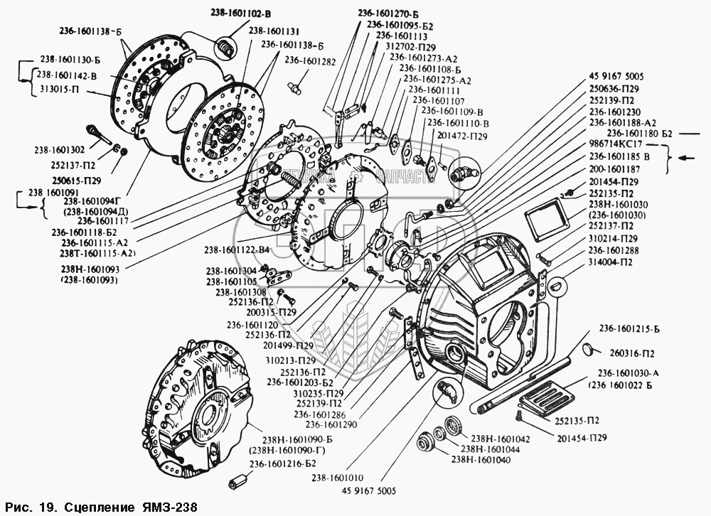 Каталог запасных частей к технике: МАЗ-54328. Сцепление ЯМЗ-238
