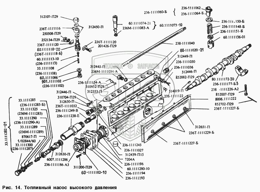 Каталог запасных частей к технике: МАЗ-54328. Топливный насос высокого давления