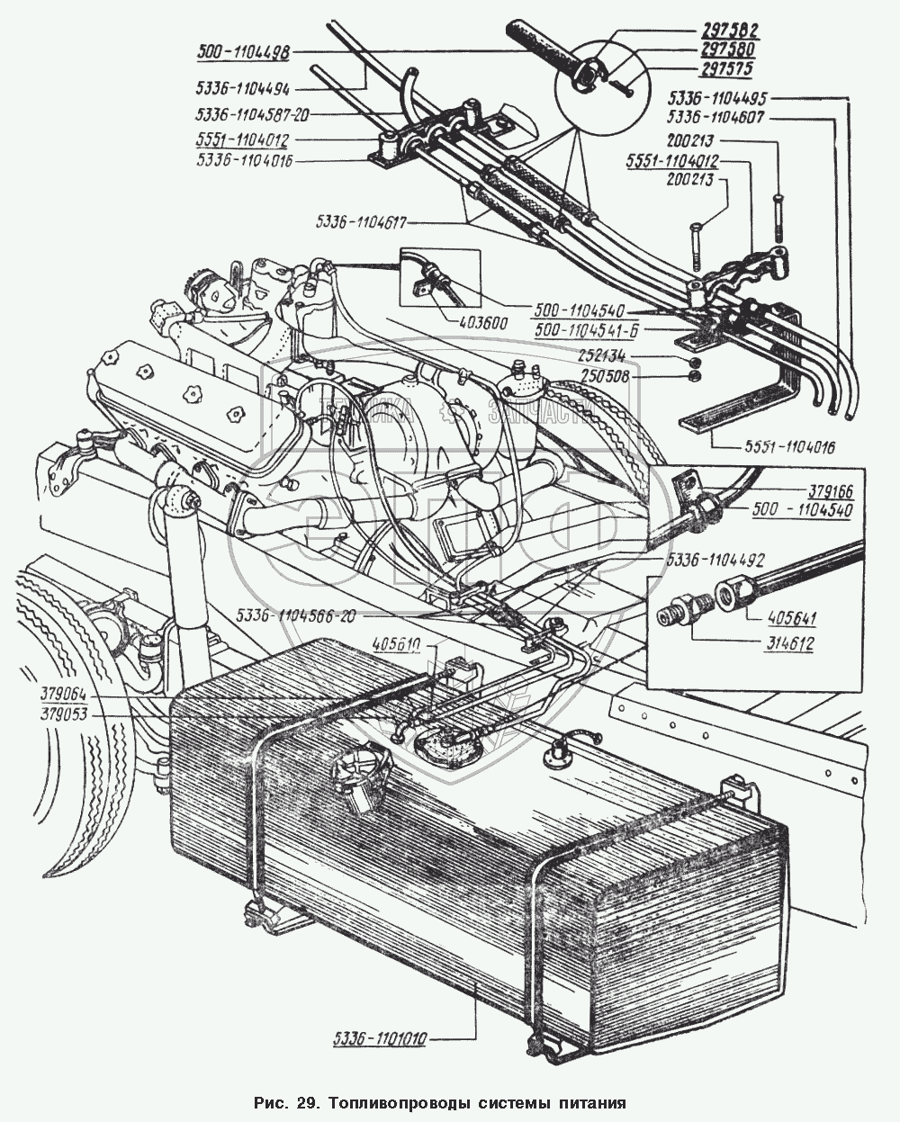 Каталог запасных частей к технике: МАЗ-54328. Топливопроводы системы питания