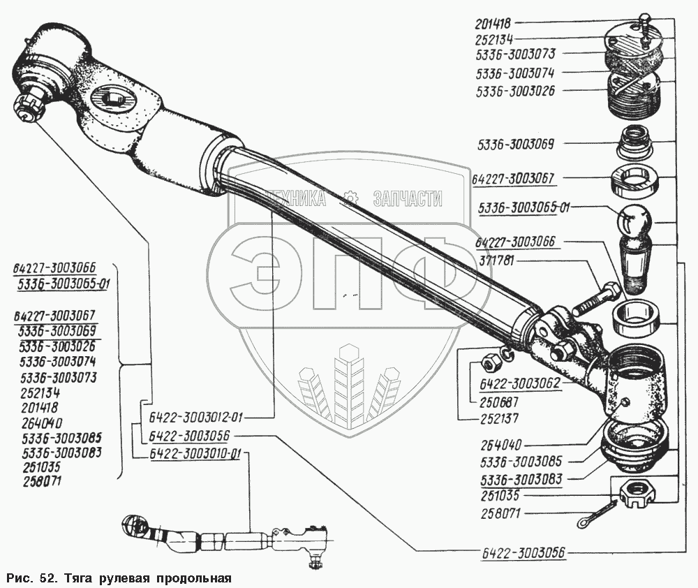 Каталог запасных частей к технике: МАЗ-54328. Тяга рулевая продольная