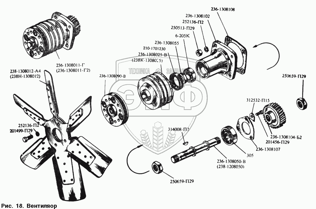 Каталог запасных частей к технике: МАЗ-54328. Вентилятор