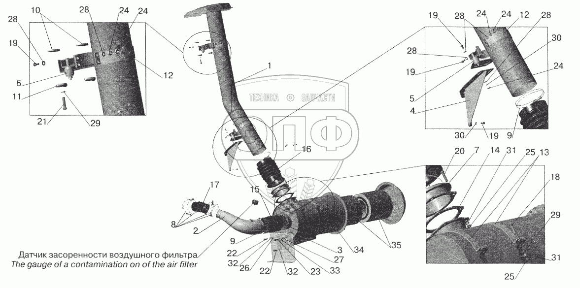 Каталог запасных частей к технике: МАЗ-5432. Система питания воздухом МАЗ-551605