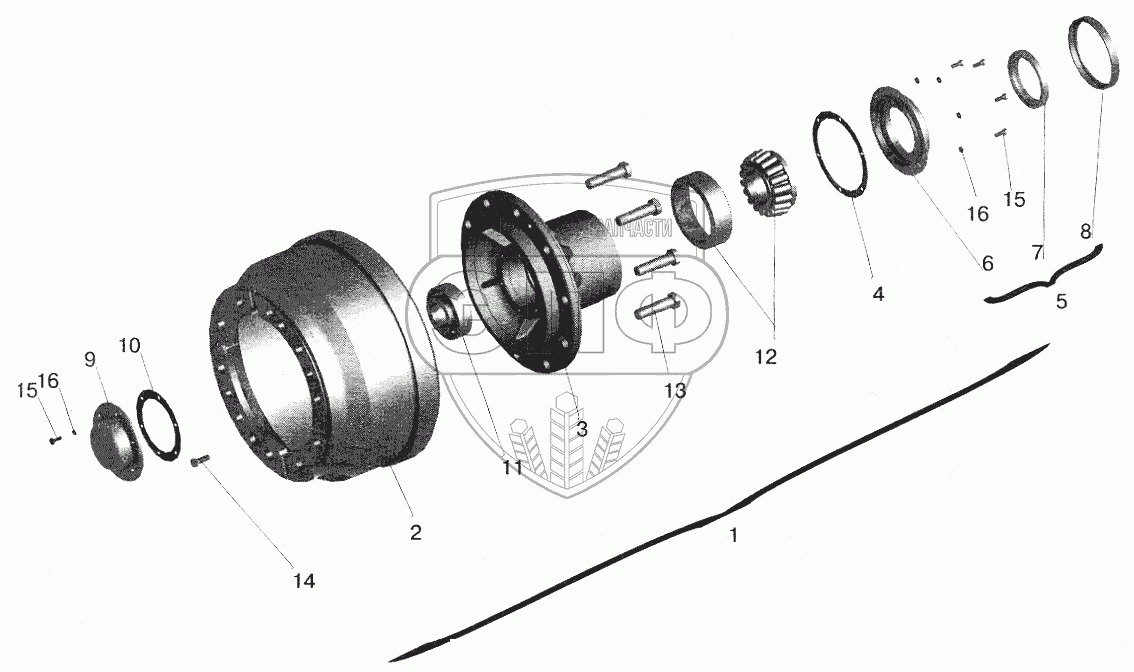 Каталог запасных частей к технике: МАЗ-5432. Ступица переднего колеса