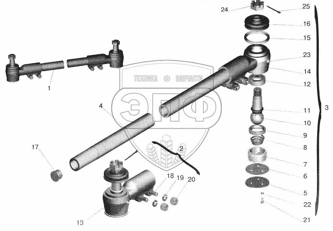 Каталог запасных частей к технике: МАЗ-5432. Тяга поперечная рулевая