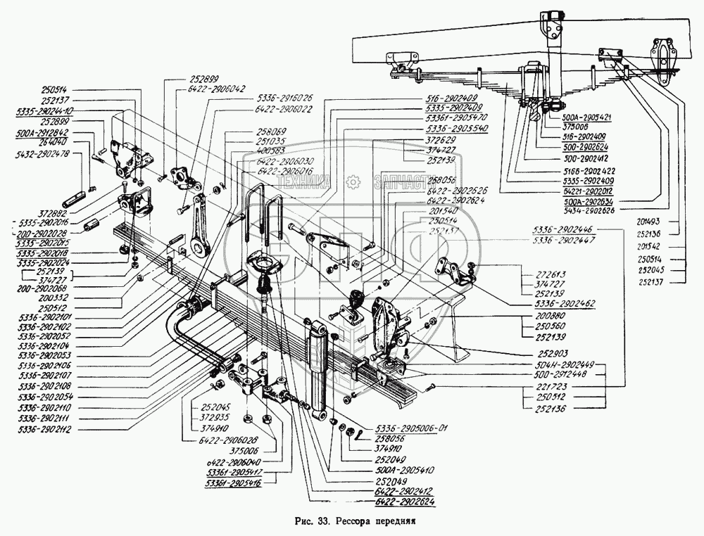 Каталог запасных частей к технике: МАЗ-5433. Рессора передняя