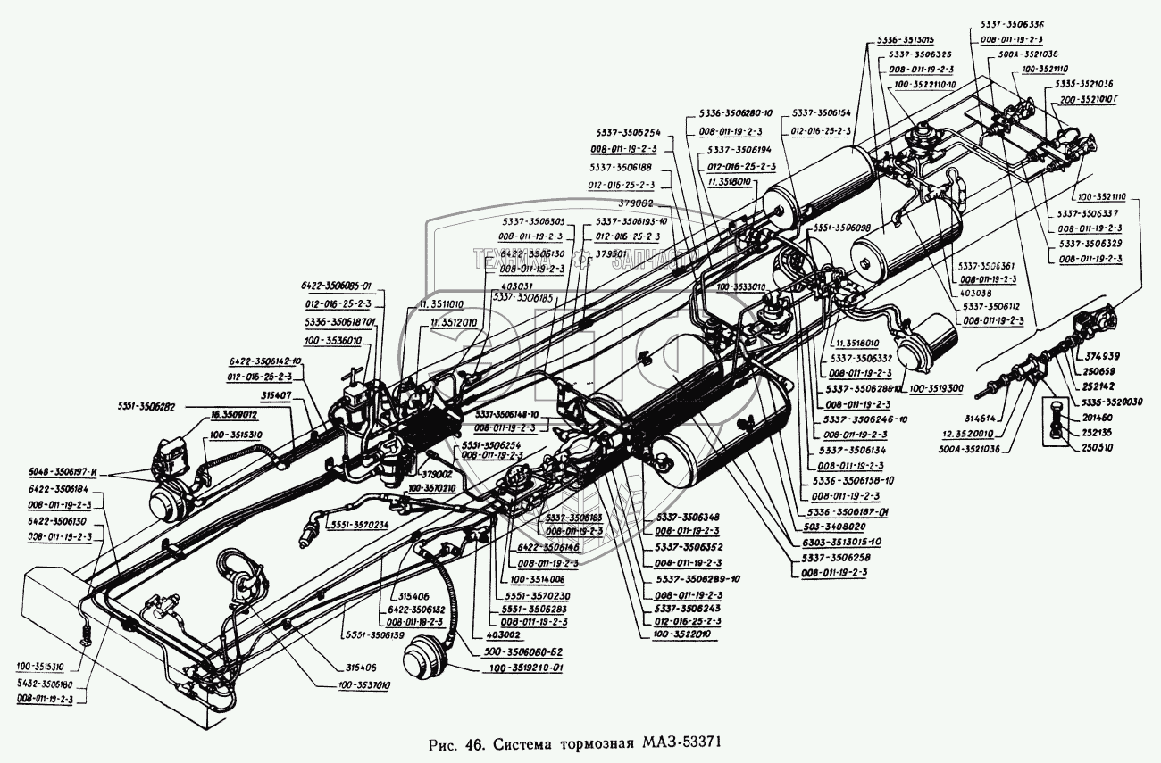 Каталог запасных частей к технике: МАЗ-5433. Система тормозная МАЗ-53371