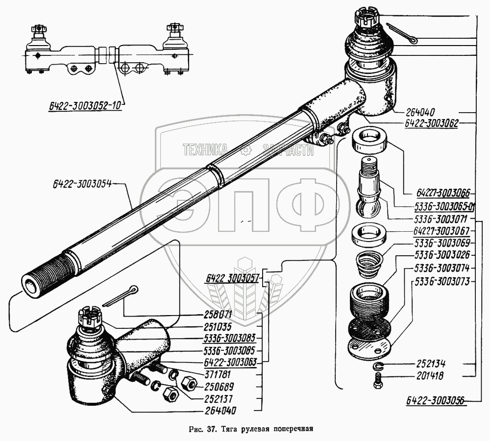 Каталог запасных частей к технике: МАЗ-5433. Тяга рулевая поперечная
