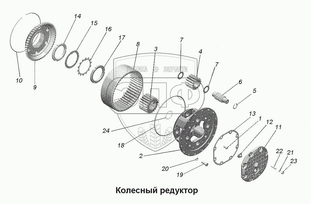 Каталог запасных частей к технике: МАЗ-543403, 641705, 641708. Колесный редуктор