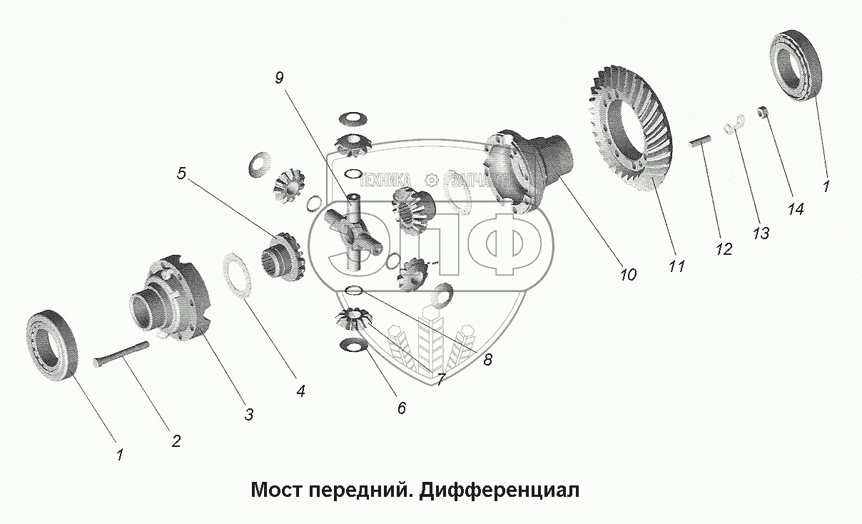 Каталог запасных частей к технике: МАЗ-543403, 641705, 641708. Мост передний. Дифференциал