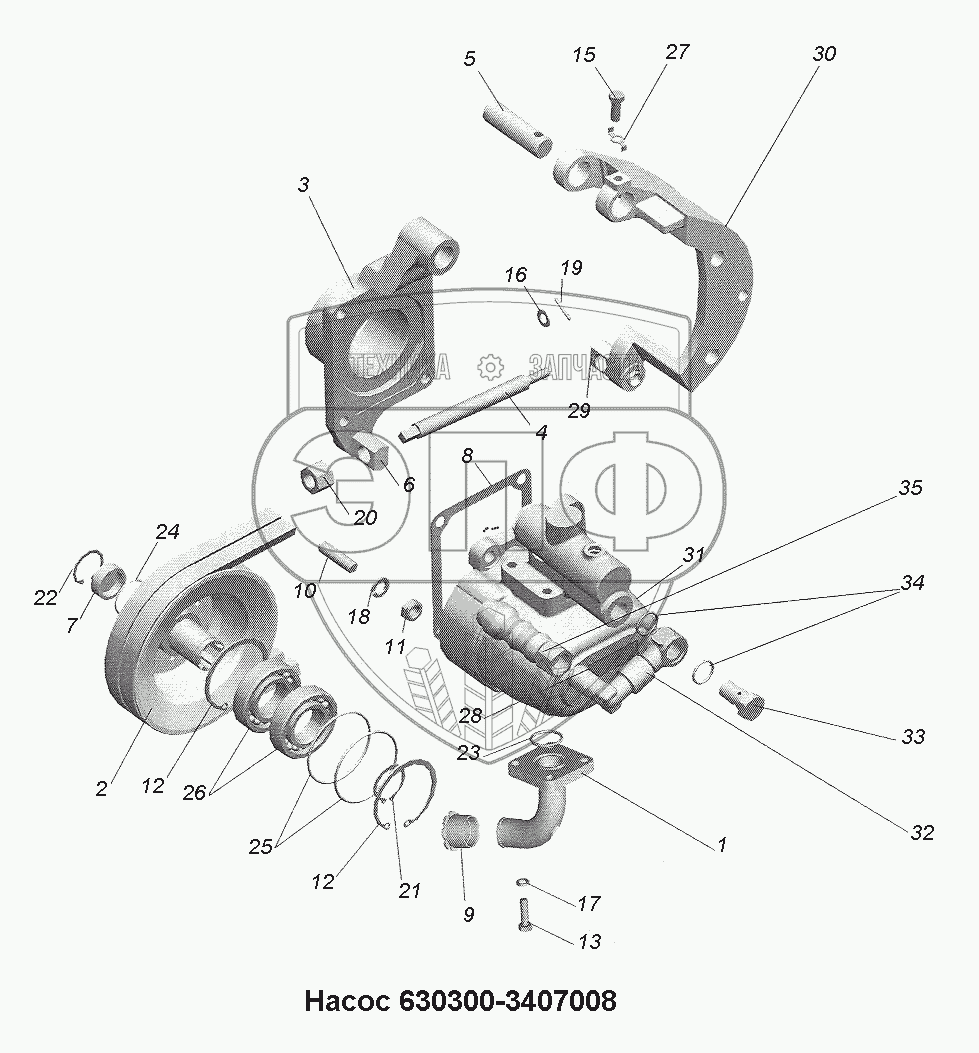 Каталог запасных частей к технике: МАЗ-543403, 641705, 641708. Насос 630300-3407008