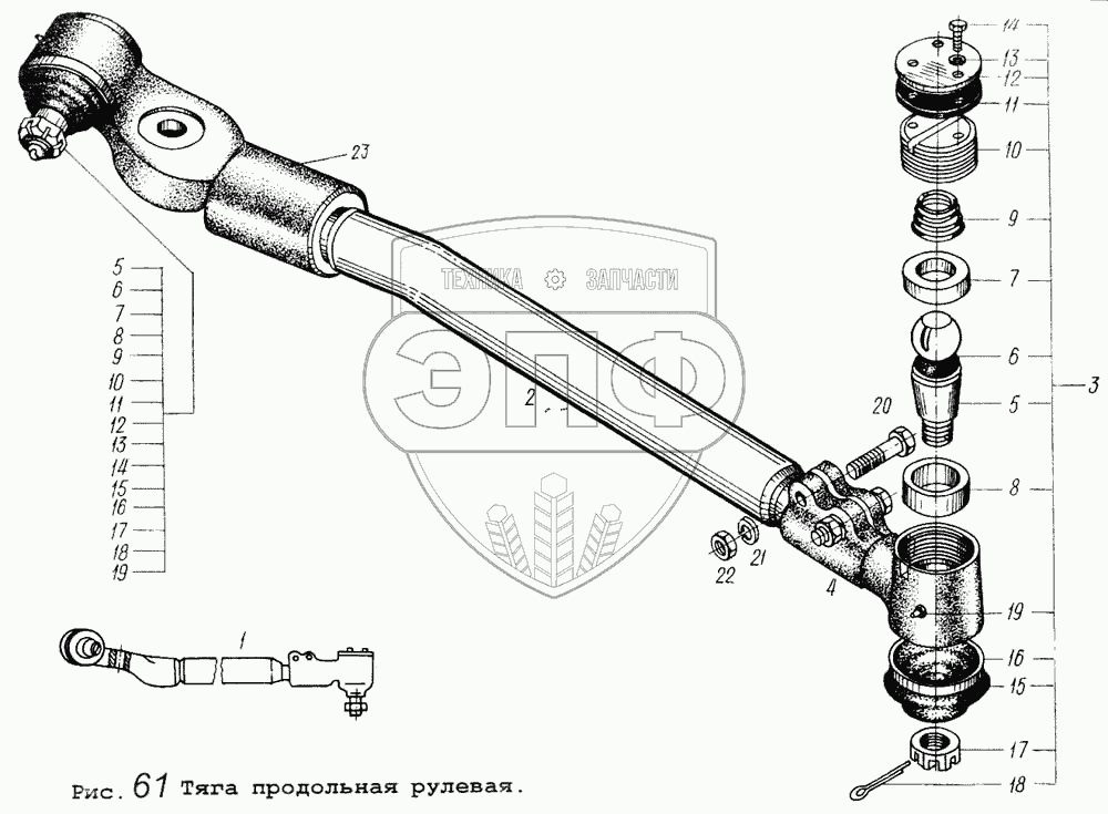 Каталог запасных частей к технике: МАЗ-5434. Тяга продольная рулевая
