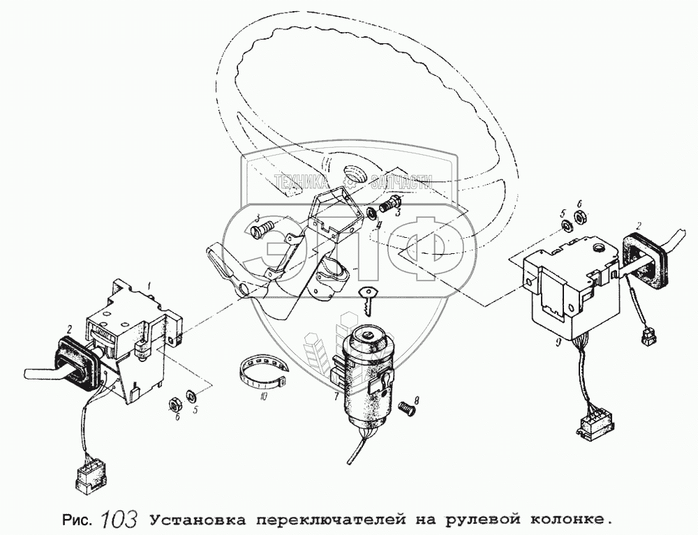 Каталог запасных частей к технике: МАЗ-5434. Установка переключателей на рулевой колонке