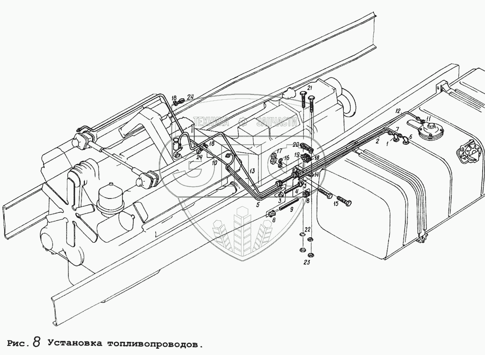 Каталог запасных частей к технике: МАЗ-5434. Установка топливопроводов