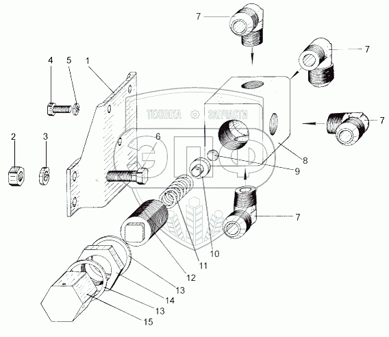 | 1 | 543-3407040 | Кронштейн предохранительного клапана | Нет на складе | |