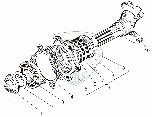 Каталог запасных частей к технике: МАЗ-543 (7310). Полуось 543-2403069-Б