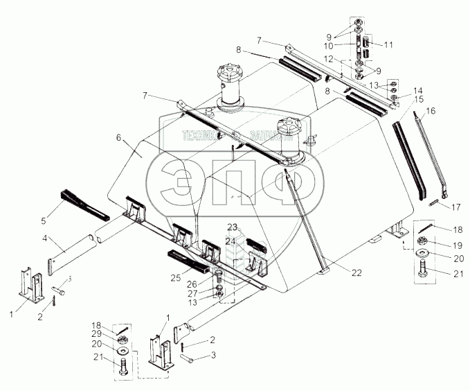 Каталог запасных частей к технике: МАЗ-543 (7310). Установка топливных баков 543А