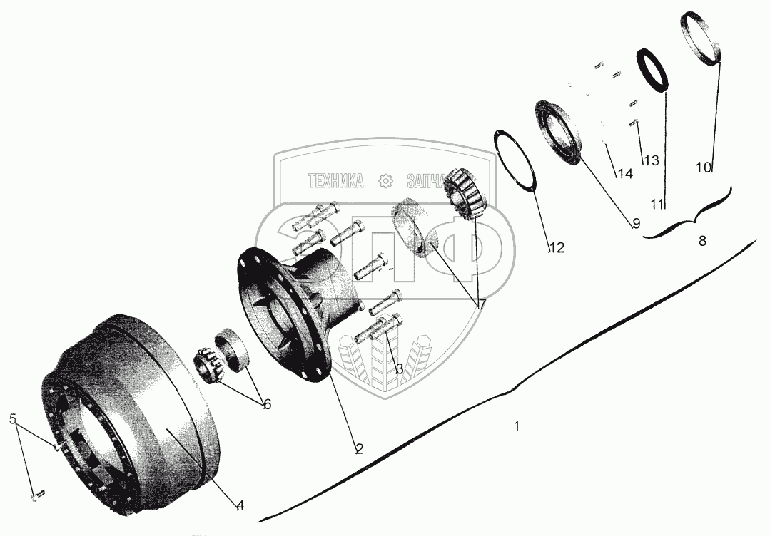 Каталог запасных частей к технике: МАЗ-544069. Ступица переднего колеса 6430-3103006