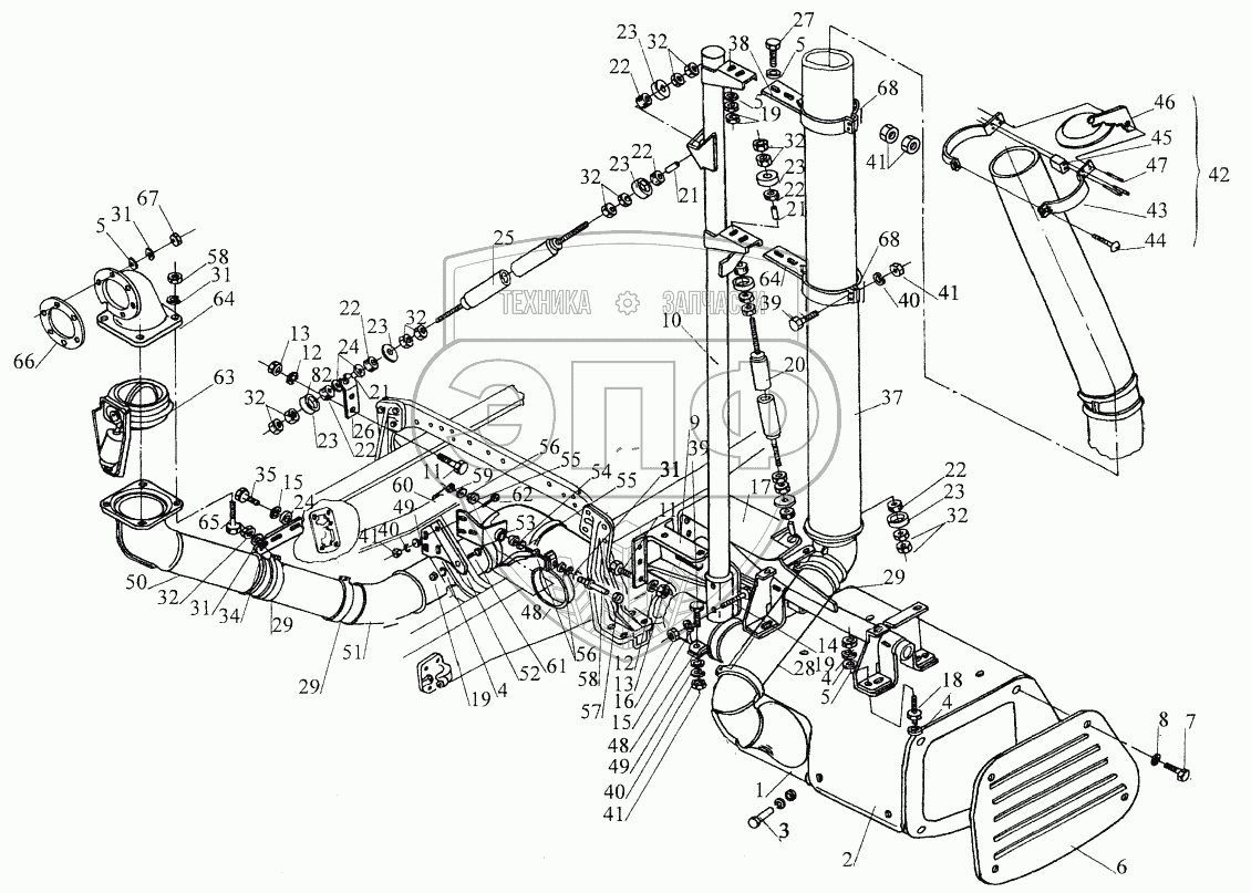 Каталог запасных частей к технике: МАЗ-544069. Установка системы выпуска 643069-1200001
