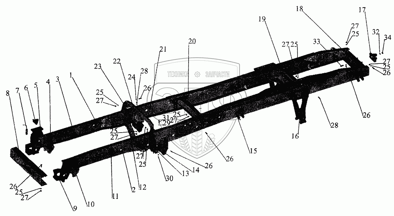 Каталог запасных частей к технике: МАЗ-5440. Рама 6430-пневмоподвеска