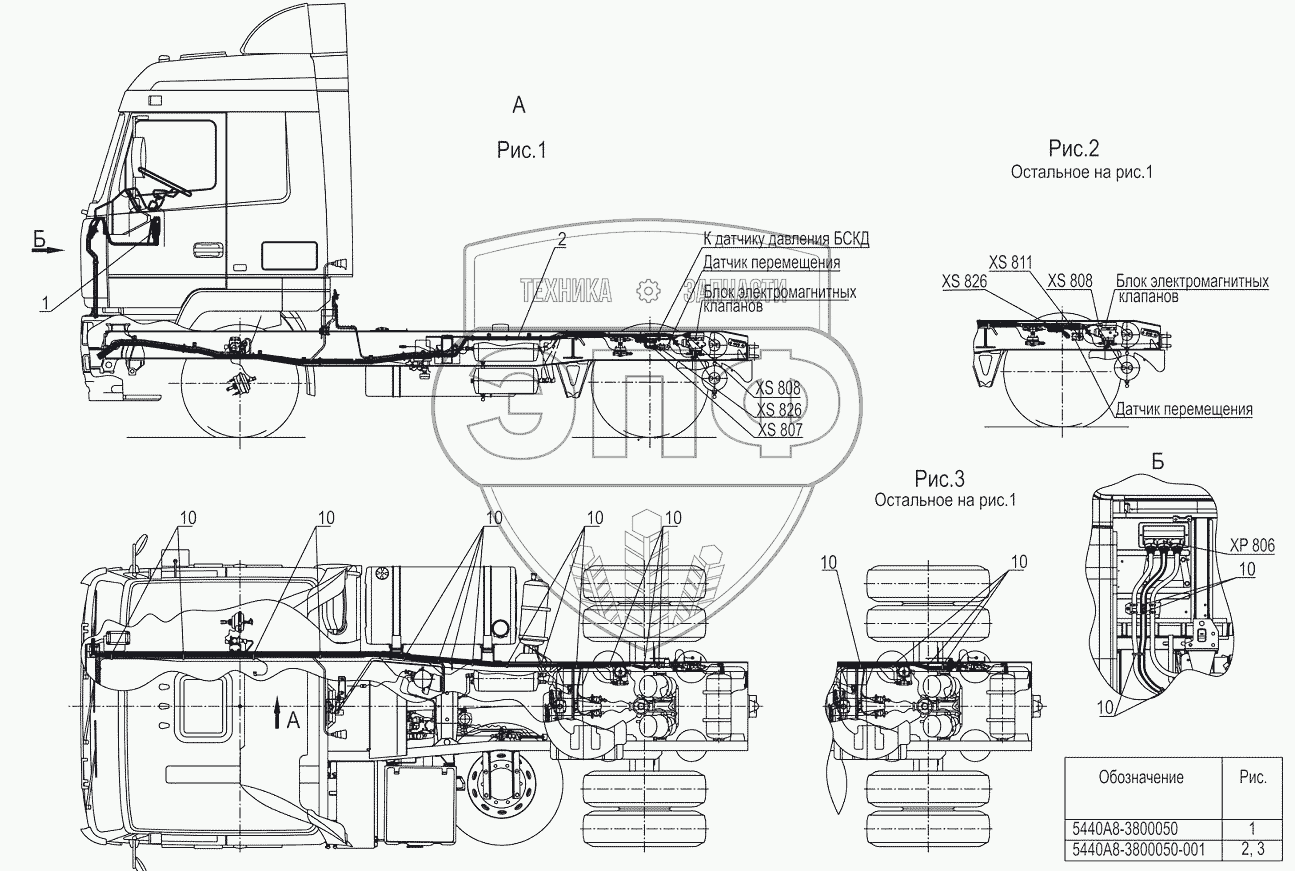 Каталог запасных частей к технике: МАЗ-5440B5. Установка электрооборудования пневмоподвески