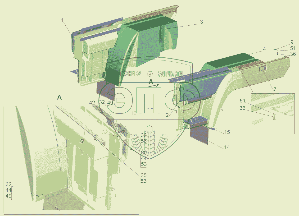 Каталог запасных частей к технике: МАЗ-5440B5. Установка оперения 6431-8400020-010