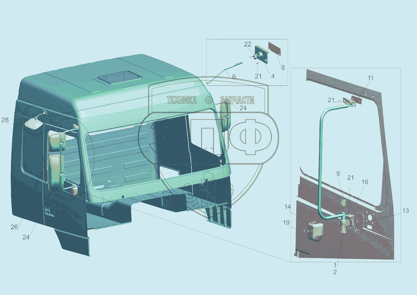 Каталог запасных частей к технике: МАЗ-5440B5. Установка зеркал 6430-8200005