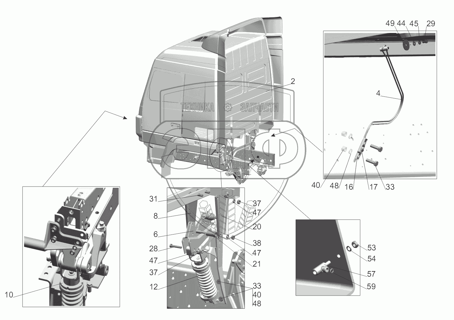 Каталог запасных частей к технике: МАЗ-5440B9, 6430B9. Установка кабины