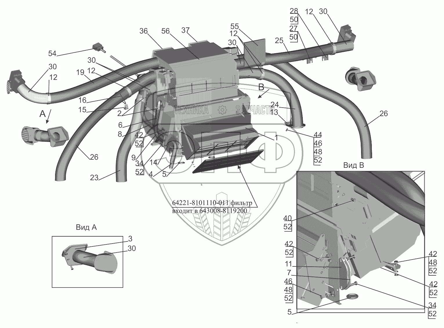 Каталог запасных частей к технике: МАЗ-5440B9, 6430B9. Установка отопителя 643008-8100001