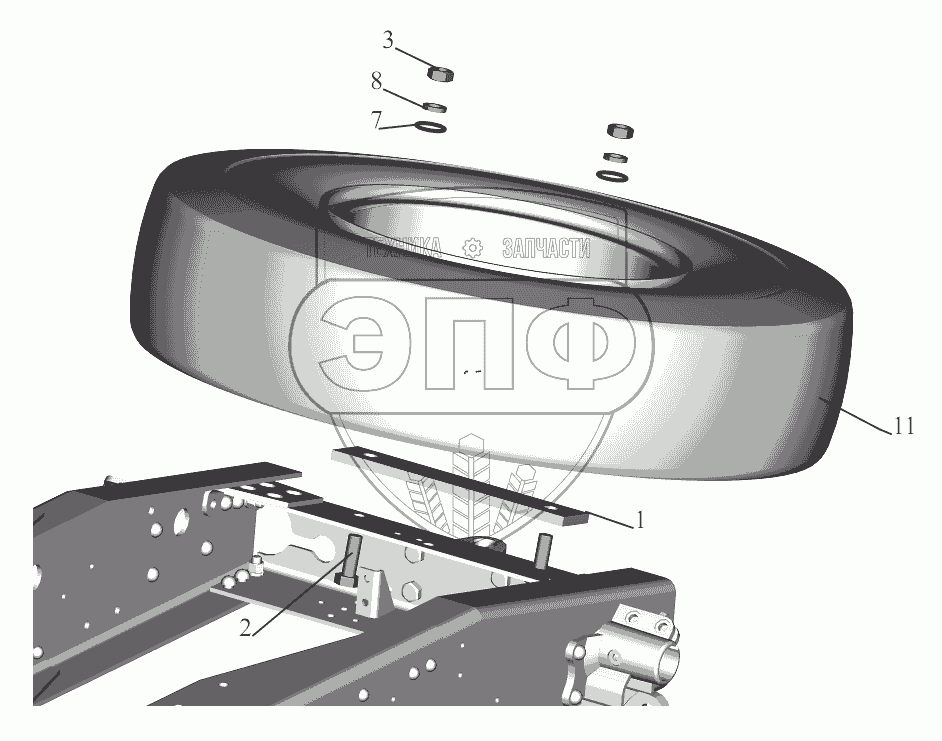 Каталог запасных частей к технике: МАЗ-5440B9, 6430B9. Установка запасного колеса