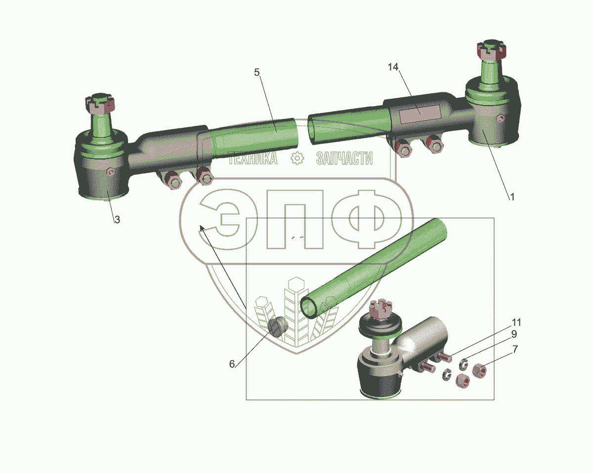 Каталог запасных частей к технике: МАЗ-5440E9. Тяга поперечная 64221-3003052